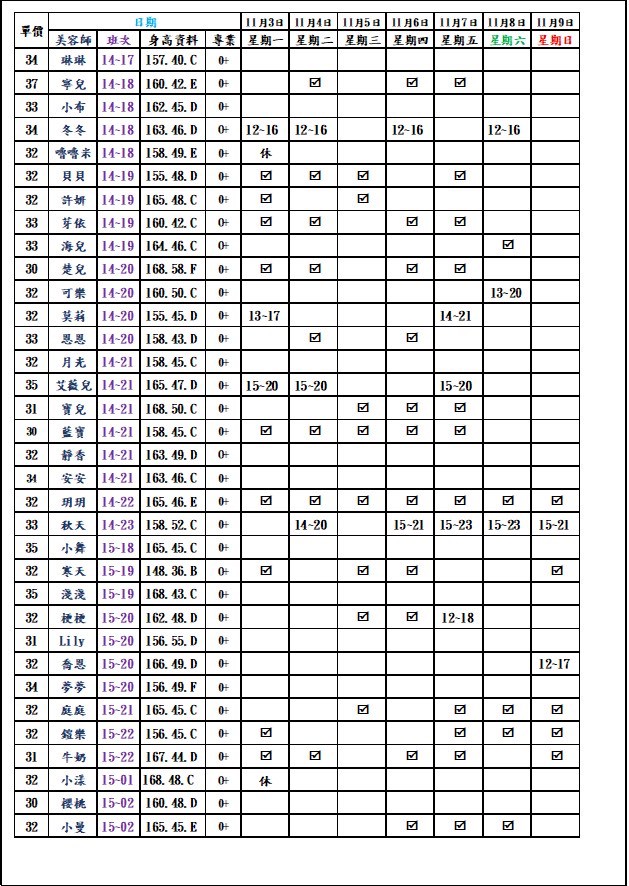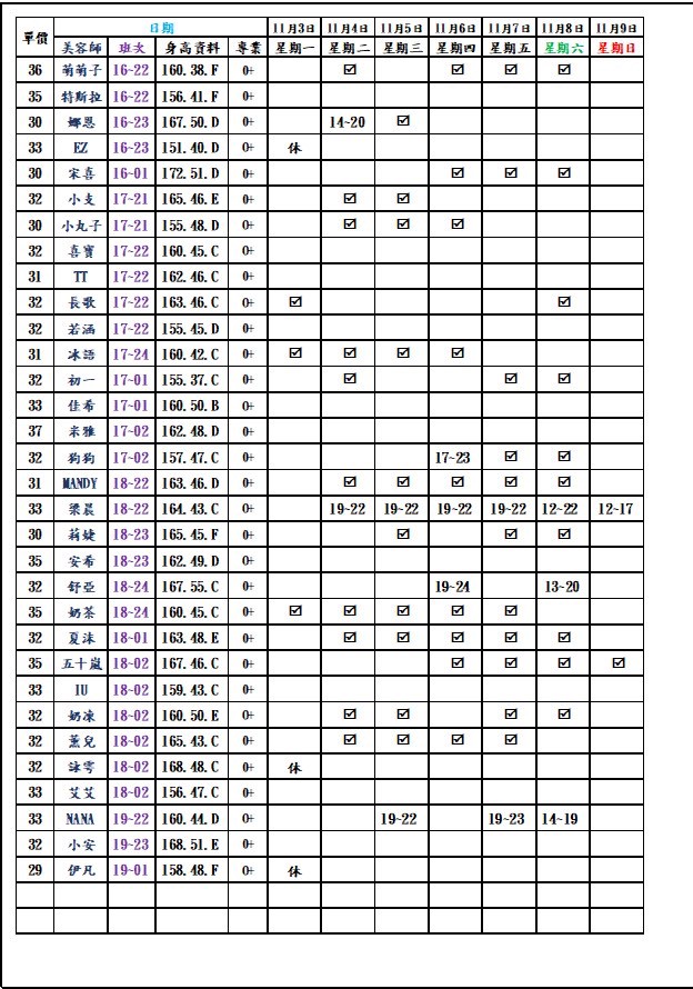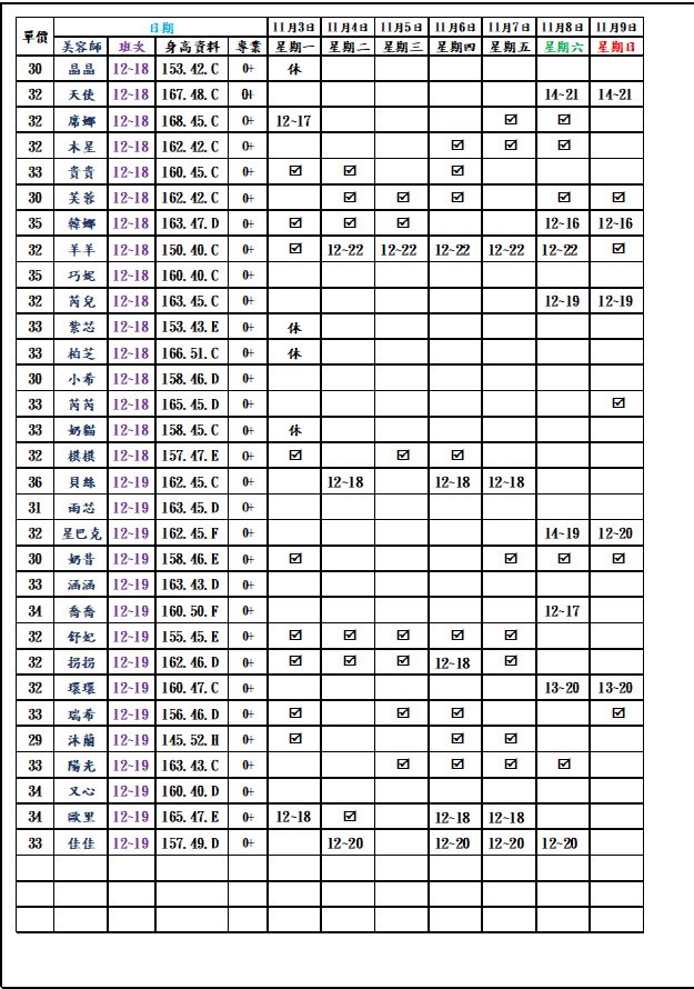 想預約或查詢當天班表?私訊洋洋小琪兒準沒錯!