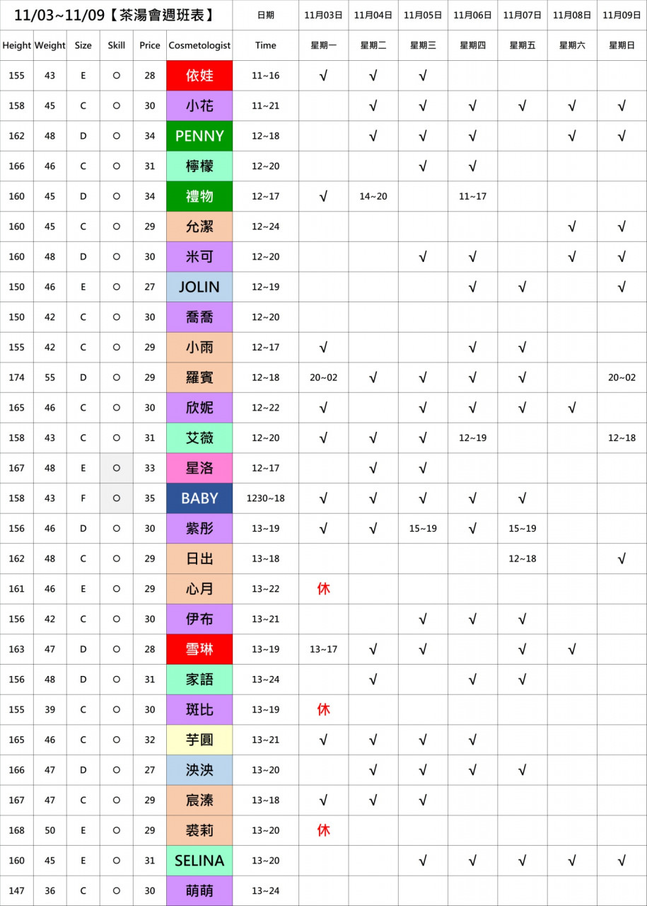 想預約或查詢當天班表?私訊洋洋小琪兒準沒錯!